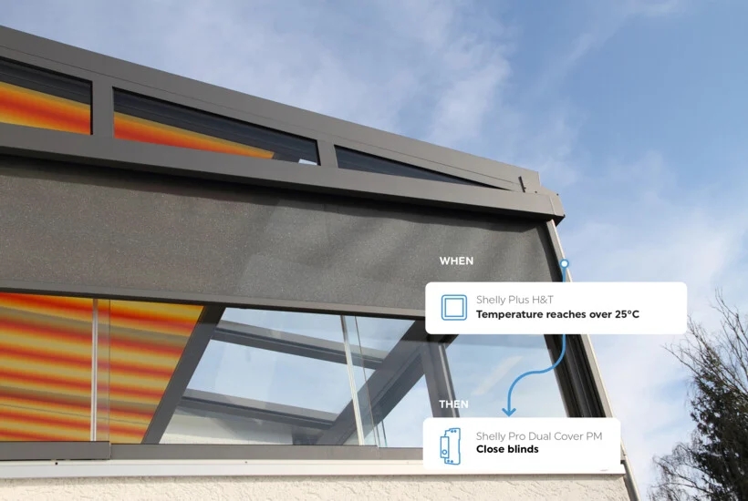 Set custom scenes by combining Shelly Pro Dual Cover / Shutter PM with your other devices.