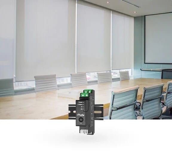 Professional DIN rail Z-Wave® shutter control with power metering. Suitable for home and facility automation with remote control of motorized blinds, roller shutters, venetian blinds, awnings..