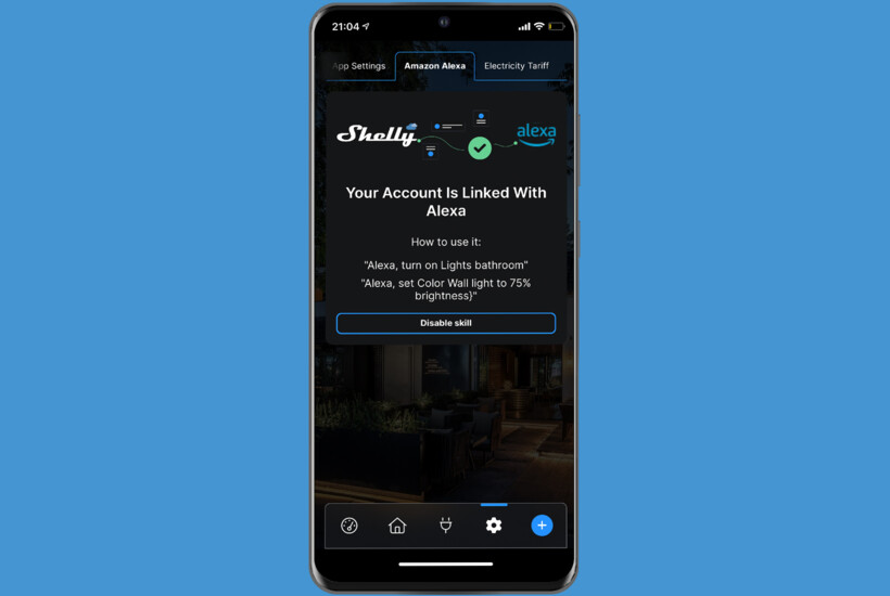 Shelly Smart Control is natively compatible with Amazon Alexa! Straight from the app settings, you can enable the “Shelly” skill in Alexa and effortlessly add your devices to control them by just using your voice