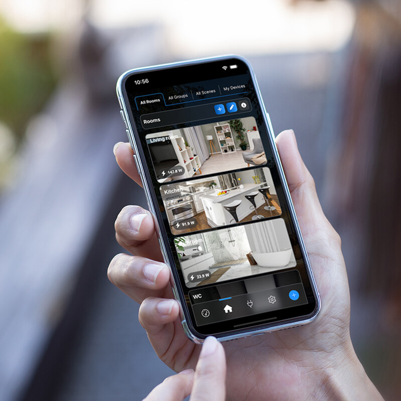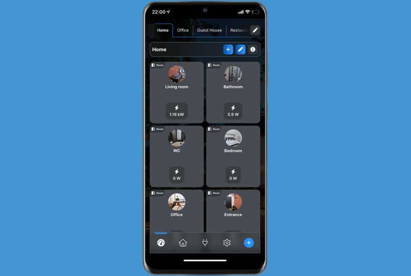 Include your Shelly devices in the Shelly Smart Control app, name them, and assign them to the rooms they belong to. Turn on/off or Dim the lights, open and close the blinds, monitor the power consumption of the washing machine and kitchen appliances, or check the garage door… you name it. Now a simple tap on the screen is enough to control all connected devices in your home.
