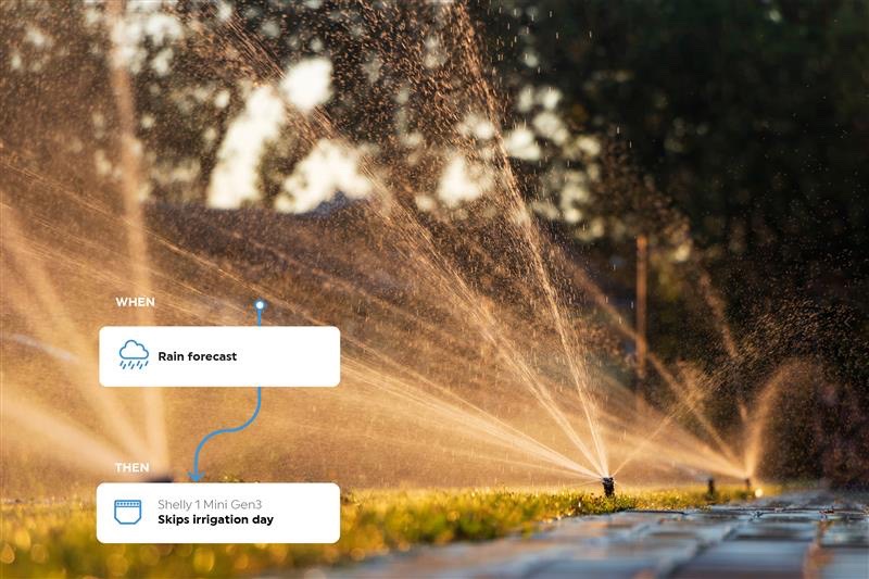Shelly Mini 1 Gen3’s smaller form factor allows it to be installed modestly near the irrigation system’s control panel or inside waterproof enclosures, ensuring protection from the elements. Its 8A capacity is perfectly suitable for managing irrigation valves, offering seamless automation and conserving water based on weather conditions by using its scripting capabilities.